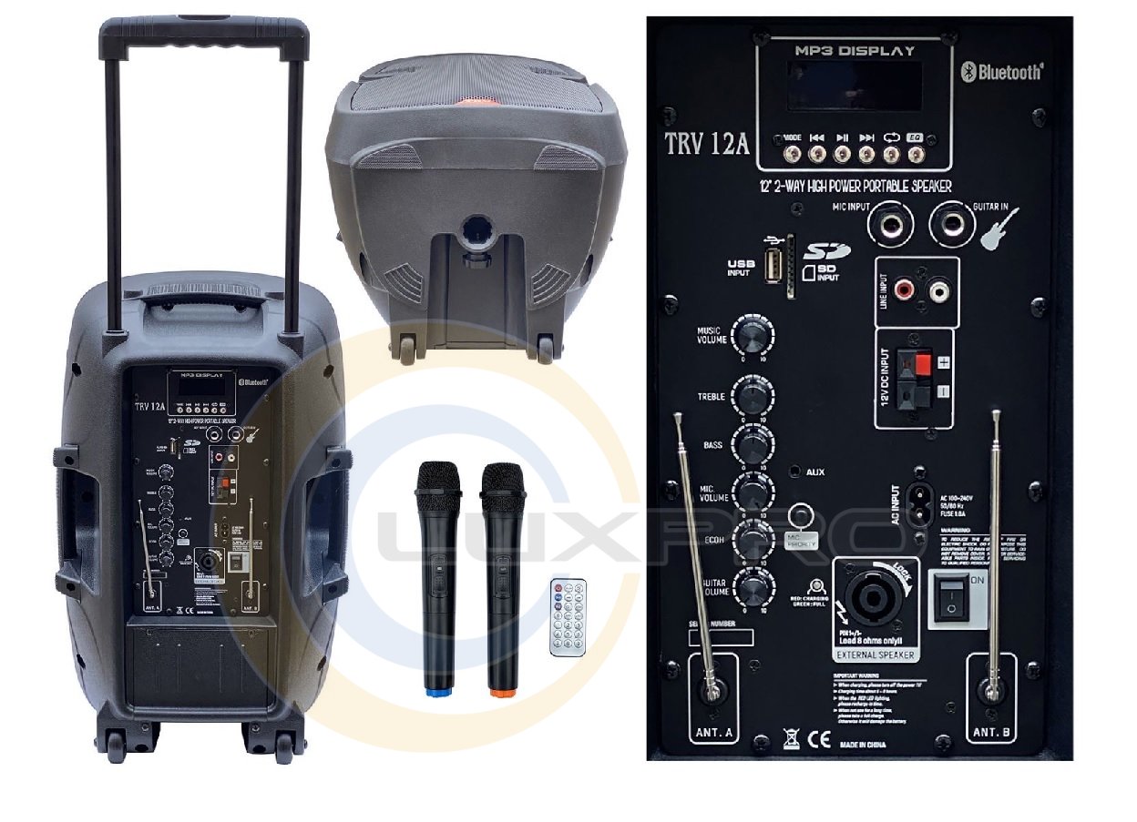Портативна акустична система TRV-15A. Вбудований MP3-плеєр здатні відтворювати музику з SD карт і USB-накопичувачів, а також дозволяє підключати зовнішні пристрої за допомогою технології Bluetooth. Акустична система має зрозуміле сенсорне управління на задній панелі, а також екран, в якому відображається основна інформація. Крім того, в комплекті так само йде пульт дистанційного керування.