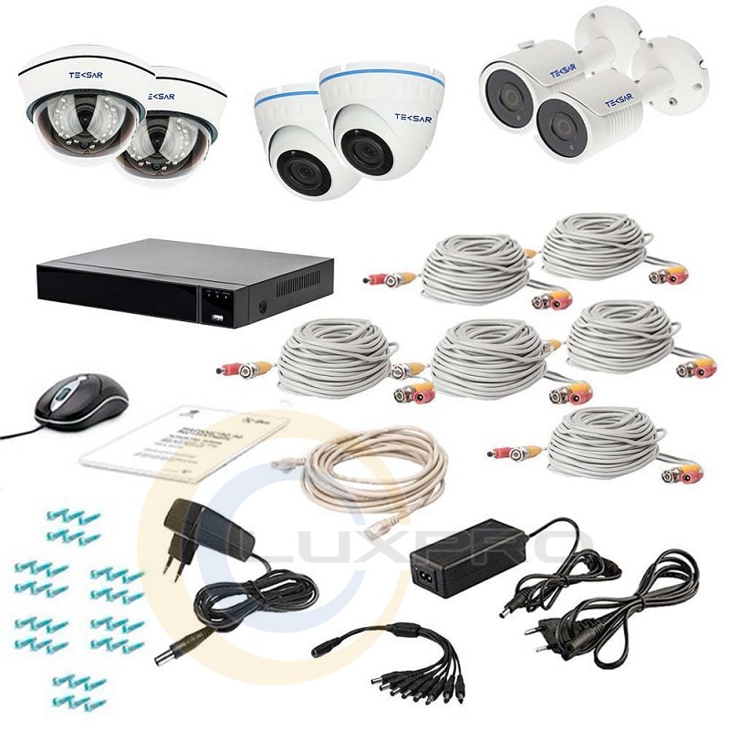 - комплект з 6-ти AHD камер високого дозволу, гібридного відеореєстратора і всього, що необхідно для самостійної установки;