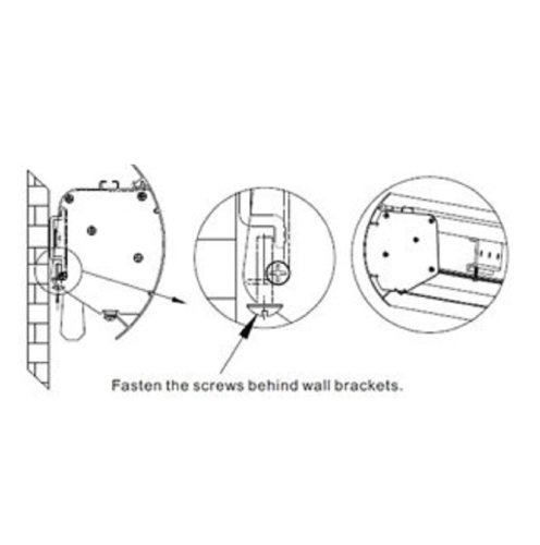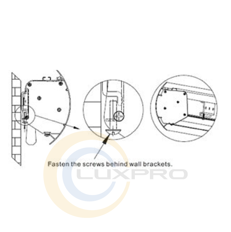 Радіо-пульт дистанційного керування йде в комплекті. Елементи кріплення можуть переміщатися по всій довжині корпусу екрана. Отвори для регулювання кінцевих положень опускання/підйому полотна знаходяться в лівій частині корпусу екрана, якщо дивитися на екран передньо. Отвір для регулювання опускання полотна знаходиться на самому валу екрана (доступ до нього через щілину для спуску полотна). Отвір регулювання підйому полотна знаходиться на зовнішній стінці корпусу екрана, під заглушкою.