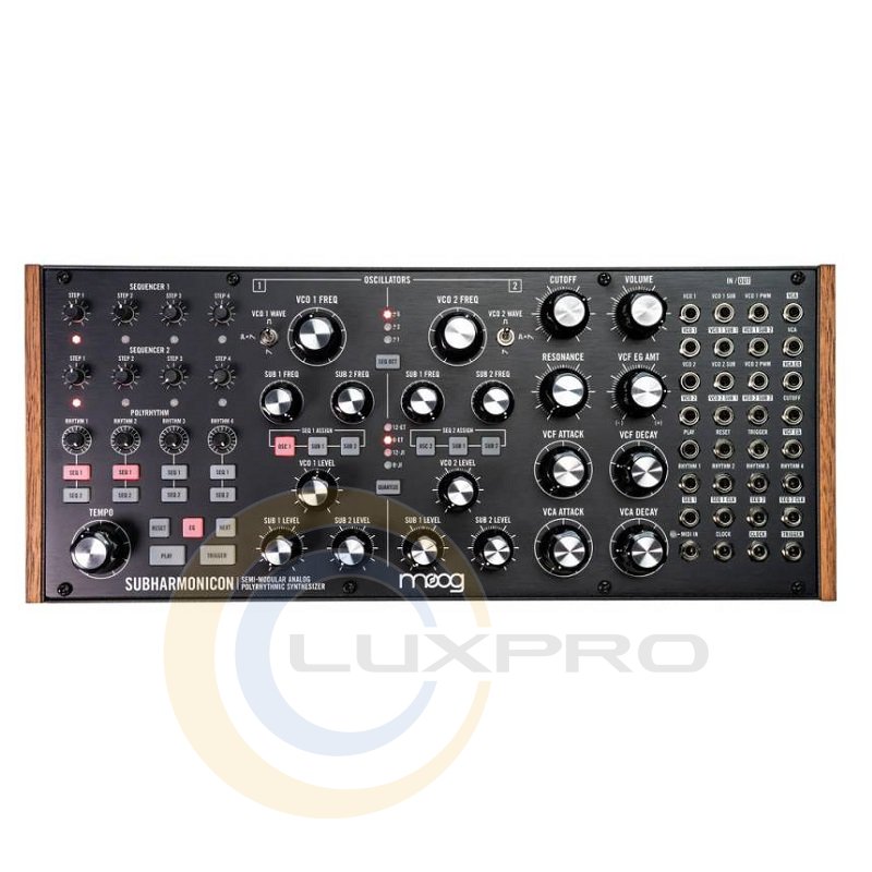 SUBHARMONICON - синтезатор. З двома VCO, кожен з двома субосцілляторамі і чотириполюсним резонансним фільтром, модель виробляє повністю аналогові тони з максимально глибокими низами і палючим верхами. Його дійсно інноваційні можливості секвенування використовують комбінацію двох чотириступінчастих секвенсоров (по одному на секцію VCO) і поліритмічна генератора для створення диких, безладних поліритмія і розвиваються гармонійних акордів. Використовуйте його як автономний полумодульний синтезатор або вставте його в свою систему Eurorack для нескінченного звукового дослідження.