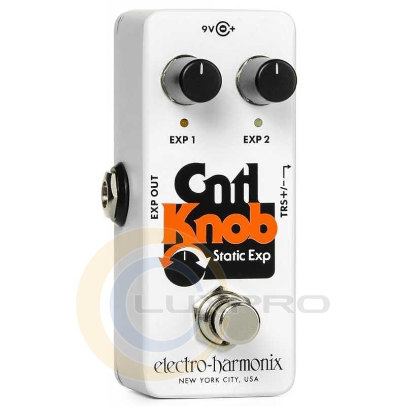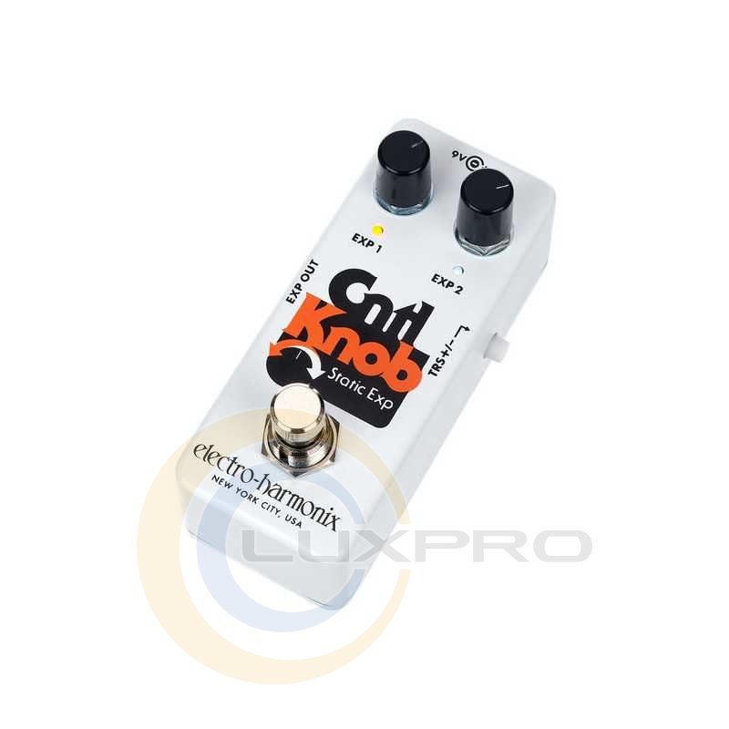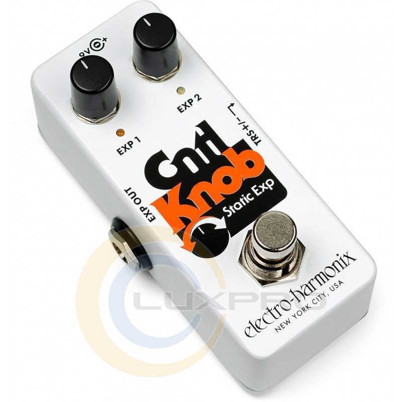 Подвійний контролер для пристроїв, що підтримують педаль експресії. Крутите ручки або зробіть 2 пресету - просто використовувати, складно недооцінити. Перемикання +/- для TRS. Кабель TRS в комплекті (180 см).Крутілка EXP 1 задає значення експресії для першого пресета, а EXP 2 відповідно для другого. На обох потенціометр максимальне значення проти годинникової стрілки відповідає значенню педалі експресії затиснутою п'ятою, а за годинниковою - затиснутою носком. Тобто все максимально просто і очевидною. Світлодіод позначає, який з пресетів в даним момент активований і може бути живиться від девятівольтовой джерела живлення.Щоб зробити Cntl Knob максимально сумісним з різними приладами, в нього був встановлений перемикач полярності експресії (TRS +/-). У комплекті з девайсом йде TRS-кабель довжиною близько 1,8 метрів. Electro-Harmonix Cntl Knob - компактна і легка в використання педаль, яка розширює можливості контролю за проявами з входами під експресію. Вона дозволяє налаштувати два пресета, які означатимуть два різних положення на педалі експресії, і моментально переключатися між ними.Характеристики:
