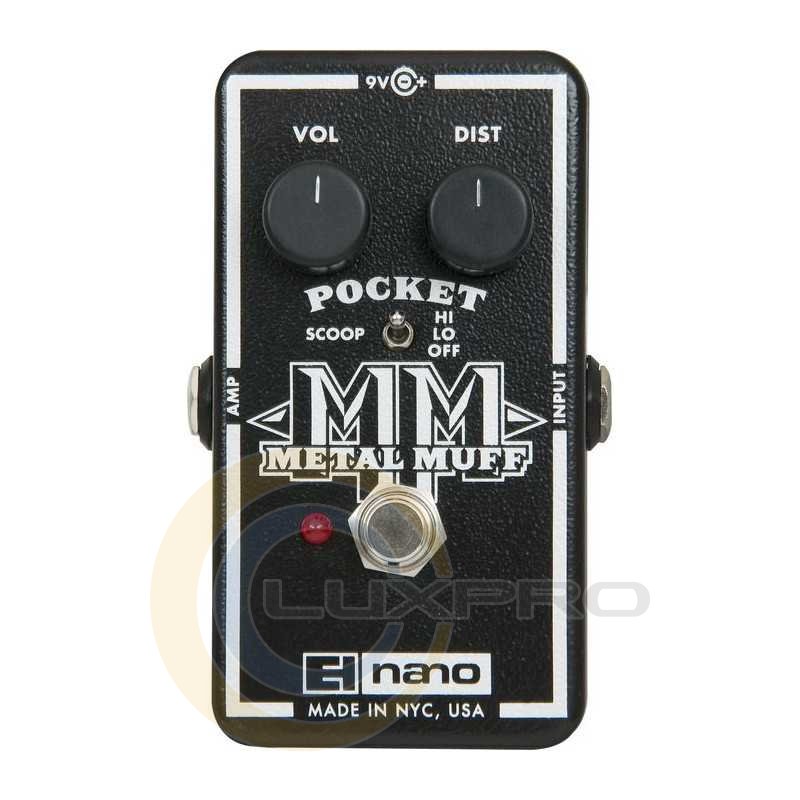 Ймовірно, ви нічого не знаєте про "хеві", якщо ніколи не пробували грати на EHX Metal Muff. Ця маленька чорна коробочка надає ні більше, ні менше, ніж тонну гейна і еквалайзер з великим діапазоном регулювання частот. А в новій версії EHX додали ще й шумодав, щоб не було фону - вийшло ідеальне поєднання. Молодший брат в родині Metal Muff увібрав в себе найпотужніші функції, і все це вмістилося в блискучу ударостійку коробочку. Перемикач задає настройки еквалайзера по ретельно налаштованим частотам. Вогнева міць Heavy Metal - простіше простого.Electro-Harmonix Nano Metal Muff with Noise Gate - це ультимативна метал машина в компактному корпусі. Щільний і напористий звук даного дісторшна супроводжуються варіативним еквалайзером і шумоподавлювачем, який позбавить вас від головного болю, пов'язаного з фоном та іншими неприємними артефактами.Відео добірка: Electro-Harmonix Nano Metal Muff with Noise Gate - гітарний ефектElectro-Harmonix Nano Metal Muff - щось особливе. Все, звичайно, знають старий добрий Bif Muff, але цей дисторшн - не просто блякла тінь свого дідуся, а стовідсотково самобутнє пристрій. Ця річ може стати справжньою зброєю в руках металіста. Три потужних смуги еквалайзера задають середину, в той час як шість ручок точно формують звук для створення самих злісних рифів прямо з пекла.Компактна версія Metal Muff існувала і раніше, але тепер вона в найкращій формі. Цьому посприяв вже згаданий вище трьохсмуговий еквалайзер, але справжнім цвяхом програми є шумодав. Єдиний потенціометр з легкістю прибирає докучливий фон, який так і лізе на високому Гейне. Невеликий розмір, варіативна еквалізація, величезний діапазон спотворень і ефективне шумозаглушення в сукупності створюють один з найкрутіших і актуальних дісторшнов для важкої музики. Не проходьте повз!Характеристики: