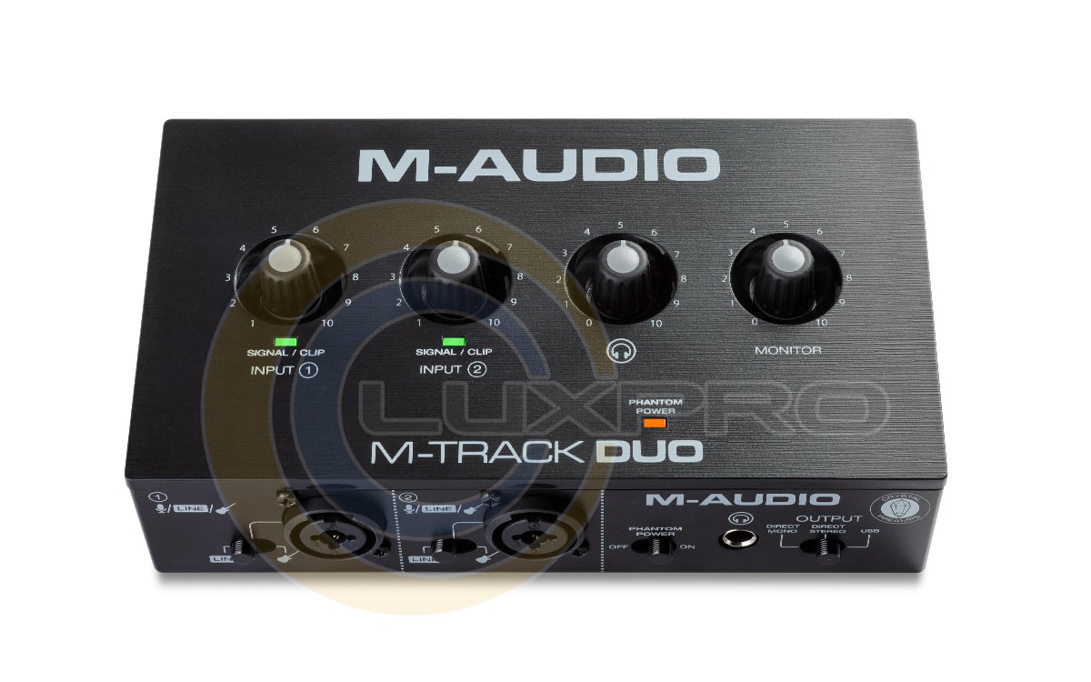 M-Track Duo забезпечує моніторинг вхідного сигналу з нульовою затримкою як через основні виходи 1/4 "TRS, так і через вихід для навушників 1/8". Перемикач USB / Direct регулює баланс між прямим входом і відтворенням з програмного забезпечення вашого комп'ютера. Це дозволяє легко записувати нові партії або додавати партії до існуючої композиції.Характеристики: