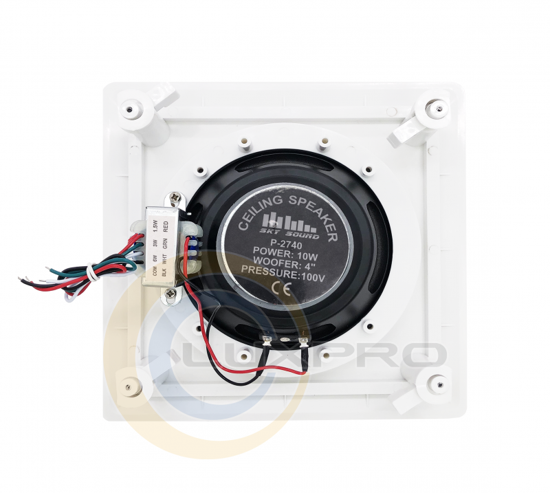 SKY SOUND P-2740 має унікальний квадратний дизайн корпусу, що дозволяє використання її в різних дизайнерських рішеннях. Передбачено обхідний режим согласуещего трансформатора - для використання в стандартних системах з низькоомними підсилювачами. Корпус виконаний з пластика ABS. Декоративна решітка і корпус можуть бути пофарбовані в будь-який колір.