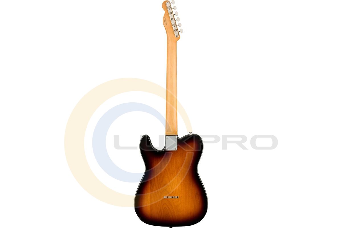 NOVENTA TELECASTER PF 2-COLOR SUNBURST - електрогітара, - це мінімалістичний рок-машина, оснащена одним синглом Fender Noventa Single-Coil, регуляторами гучності і тону, стильною «половиною» пікгард і бриджем 3-Saddle Custom "Cut-Off" Vintage-Style Tele Bridge with Compensated Brass Saddles. Її приголомшливий зовнішній вигляд доповнений гострої серединою і гарчать верхами звукознімача Noventa. Крім того, доступні дивно універсальний і динамічний спектр тонів, а також регулятори гучності і тону. Гриф '60s C з 21 ладом Medium Jumbo і 9.5-дюймової накладкою забезпечує, як сучасні, так і вантажні ігрові можливості, що є характерною рисою Fender.
