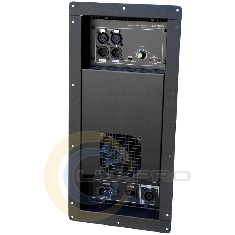 Вбудований професійний підсилювач потужності Park Audio DX700S (підсилювальний модуль). Park Audio DX700S призначений для установки в акустичні системи (сабвуфери).