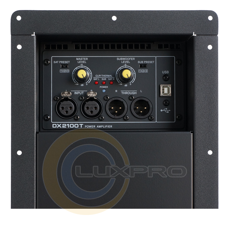 Park Audio DX2100T DSP - трьохканальний підсилювальний модуль з DSP-процесором, виконаний у вигляді моноблока. Всі елементи модуля змонтовані на Г-образної конструкції з двох несучих панелей і закриті з тильного боку кожухом, який виконує захисні функції і забезпечує поглиблену посадку модуля в корпус акустичної системи. Живлення до модуля підводиться за допомогою від'єднується мережевого кабелю.