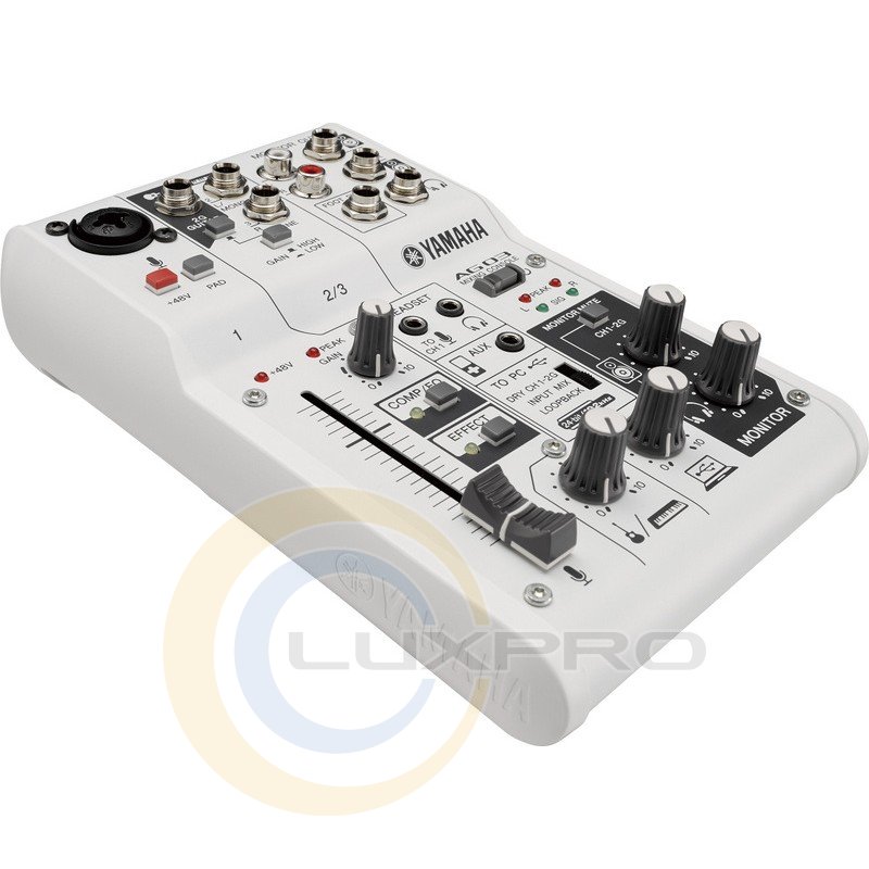 Компанія YAMAHA представила новий мікшерний пульт YAMAHA AG03. Мікшер YAMAHA AG03 створений спеціально для музикантів, любителів комп'ютерних ігор, а також для виробництва подкастів і проведення онлайн трансляцій. Пульт YAMAHA AG-03 дозволяють виробляти високоякісну аудіозапис / відтворення і сумісні з PC / Mac і iPAD пристроями.
