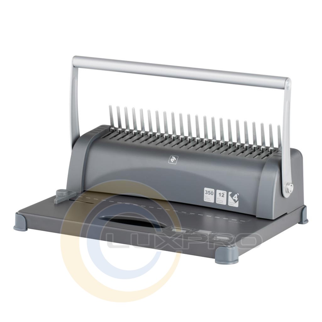 Біндер з фіксованою відстанню глибини отворів у 3мм, розрахований на перфорацію 12 листів та палітурку 350 сторінок.