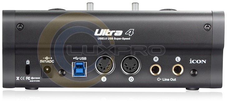 ULTRA4 - аудіоінтерфейс підтримує режими до 24 біт / 192 кГц і може використовуватися спільно з Mac або PC, а також з iOS-пристроями. iCON ULTRA 4 може похвалитися двома високоякісними предусилителями з незалежними перемикачами фантомного живлення і аудіоконвертер світового класу, які забезпечують 120 дБ динамічного діапазону. Комутаційні можливості iCON ULTRA 4 представлені двома мікрофонними / лінійними / інструментальними входами XLR-1/4 ", двома балансними лінійними виходами на джеках і окремим стереофонічним виходом для підключення навушників. Крім того, в наявності є стандартні MIDI-вхід і вихід.