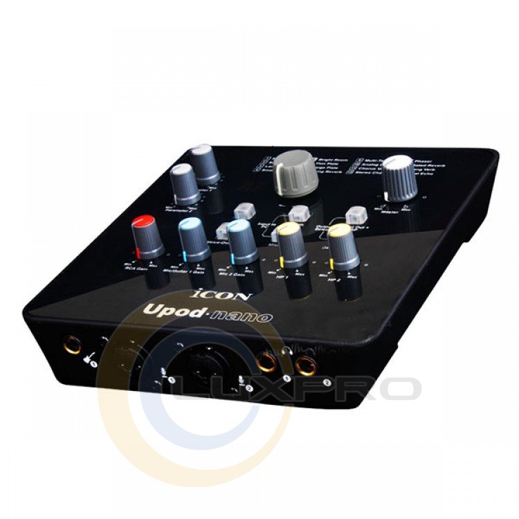 UPod Nano - аудіоінтерфейс має дві ручки управління на верхній панелі параметрів DSP. 2 аналогових виходу з роз'ємами Jack 1/4 "TRS. Вхідні гнізда Stereo RCA з 3,5 з керуванням посилення незалежно, для підключення зовнішнього пристрою, з можливістю обробки DSP. Кнопка для автоматичного ослаблення музики в присутності сигналу від мікрофона. Ключі Dry / Wet для контролю сигналу мікрофона, для запису на ПК. Ключі Dry / Wet управління Сигнал Monitor. Master Регулятор гучності на верхній панелі.