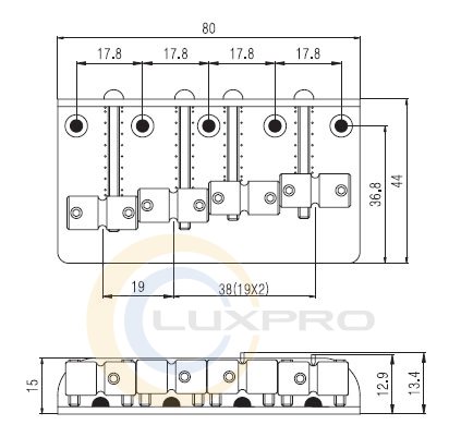 4 сідла з латуні. Відстань між струнами - 19 мм. 5 посадочних гвинтів. Колір: хром (CR).