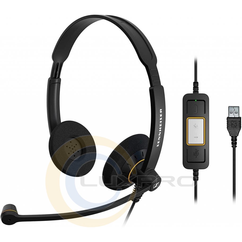 Sennheiser SC 60 USB - широкосмугова бінауральна офісна гарнітура з блоком управління викликами і USB роз'ємом. Обладнана мікрофоном з функцією шумозаглушення на гнучкому тримачі. Функція ActiveGard захищає від акустичних ударів і пікових рівнів звуку.