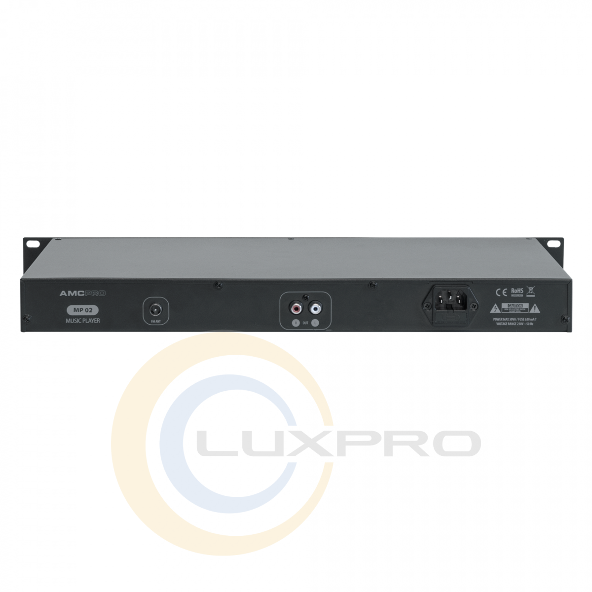 Модель AMC MP 02 характеризується наявністю вбудованого CD-плеєра для відтворення компакт дисків, тюнера FM-радіо, роз'єми USB, а також можливістю підключення карти пам'яті стандарту SD. В наявності стереовиход стандарту RCA.