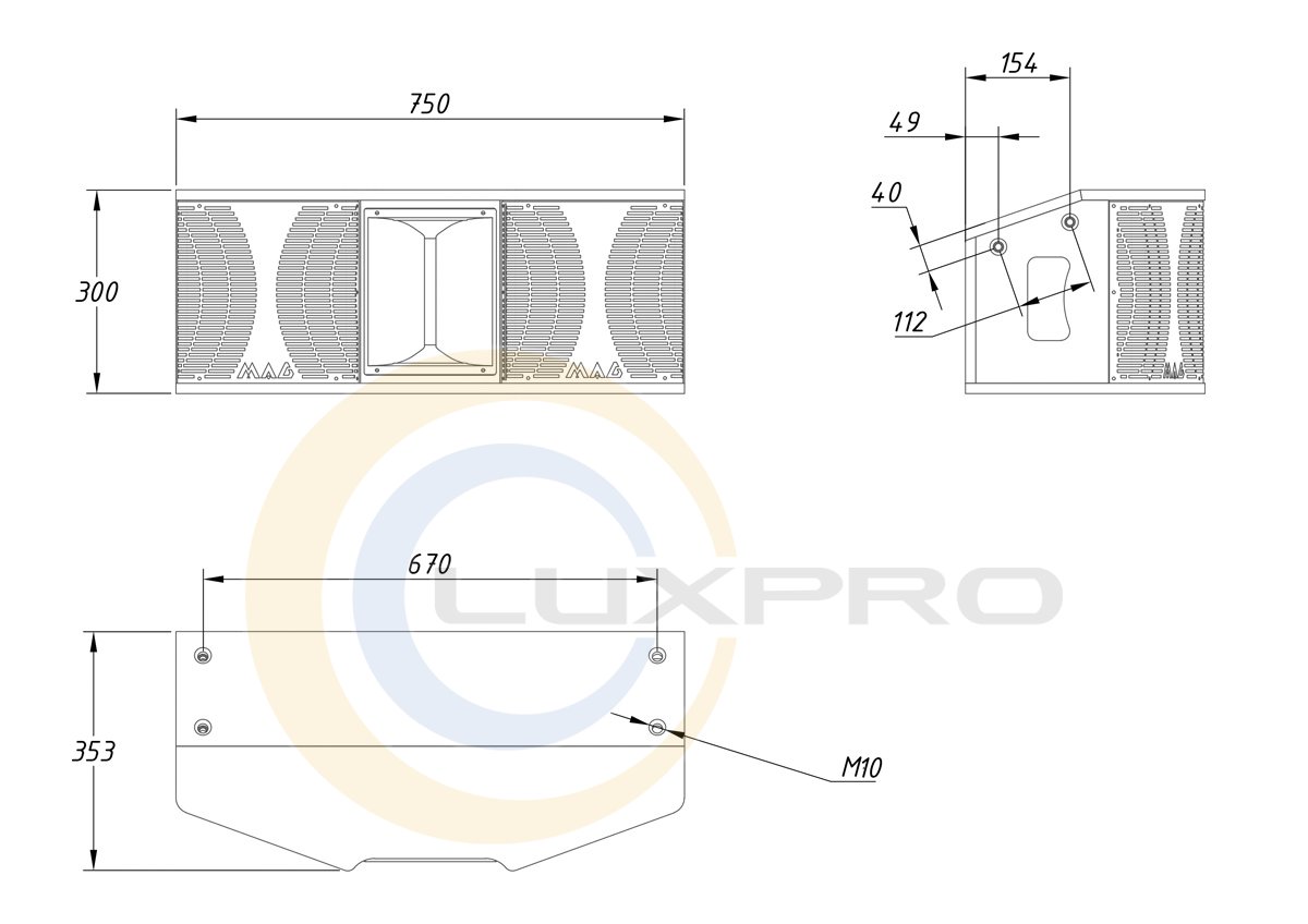 - розміри (ШxВxГ):750x300x353 мм;