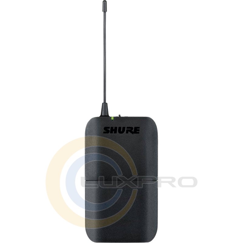 Shure BLX14E/CVL-M17 - вокальна аналогова бездротова радіосистема складається з 3-х елементів - приймача BLX 4, поясного передавача BLX 1 і петличного мікрофона CVL. У всіх типах радіосистем передавач є універсальним пристроєм і може бути виконаний в декількох варіантах: вбудований в ручний мікрофон або як поясний передавач для підключення петличного мікрофону / головної гарнітури / музичних інструментів з виходом ¼. В даному випадку використовується передавач BLX 1, який здатний передавати сигнал в UHF діапазоні по одному з 10 фіксованих каналів, на відстань до 90 м (відкритий простір). В якості елемента живлення використовуються дві батарейки АА типу.