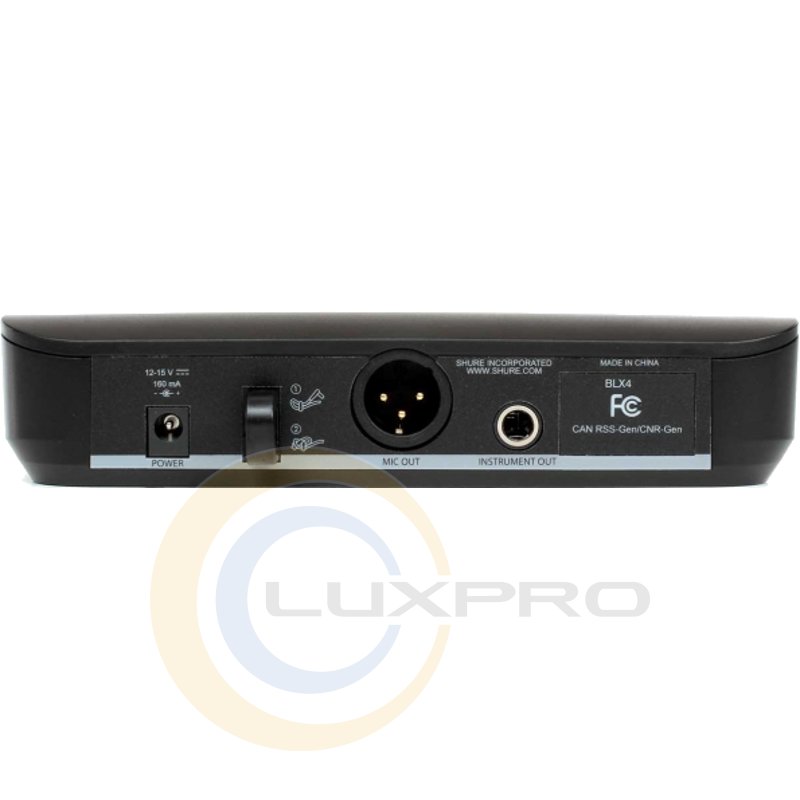 Як приймач використовується BLX 4, який приймає сигнал з передавального пристрою (передавача) і передає його на мікшерний пульт або акустичну систему через паралельний аудіо вихід XLR / ¼ Jack. Універсальність BLX14E/CVL полягає в тому, що якщо вам необхідно мати кілька варіантів підключення (головна гарнітура і ручний мікрофон), то вам не доведеться купувати окрему радіосистему з потрібним вам передавачем, досить лише докупити потрібний передавач, наприклад, поясний або головну гарнітуру (Headset ) і підключити його до існуючого приймача. Така можливість робить систему універсальною у використанні.