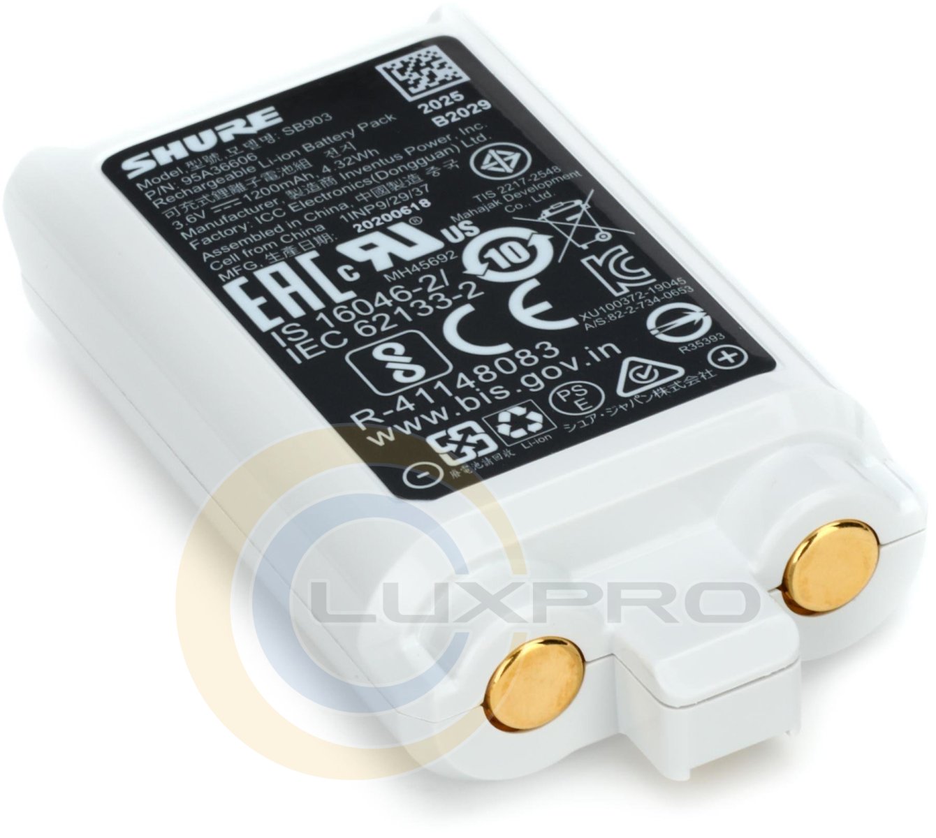 Shure SB903 - це літій-іонна батарея, що забезпечує живлення будь-якого передавача SLX-D до 8 годин. При використанні SB903 на РК-дисплеї передавача відображається час роботи батареї в хвилинах і секундах. Акумулятор можна заряджати за допомогою зарядного пристрою для одного акумулятора SBC10-903 або зарядної станції з двома док-станціями SBC203 (обидва продаються окремо). SBC203 пропонує комплексне управління живленням, дозволяючи заряджати дві батареї, не знімаючи їх з передавачів.