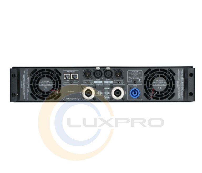Вбудований DSP фірми DFM audio, бібліотеки гучномовців, FIR фільтри, управління і контроль за Ehernet, групове управління. Імпульсний джерело живлення, примусове охолодження, біполярні вихідні транзистори, клас посилення TD, 2-хступенчатий захист від перевантаження, захист від короткого замикання, термозахист, Clip-лімітер, захист від включення в мережу 380 В. Захист від постійної напруги на виході, захист від ВЧ немузикальних сигналів, індикатори сигналу і перевантаження, відокремлюваний мережевий кабель (PowerCon), знімний протизапорошений фільтр. Корпус 2U. Вага 14 кг.