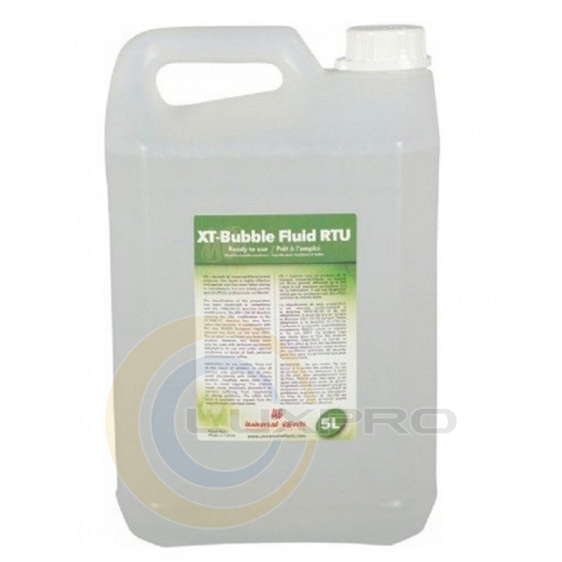 UE Bubble Fluid 5L UV - ACTIV - рідина для всіх типів генераторів мильних бульбашок. Призначена для заправки генераторів мильних бульбашок. Забезпечує ефект інтенсивного заповнення простору райдужними мильними бульбашками.