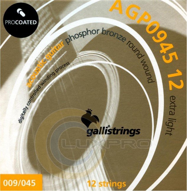 Струни для акустичної 12-струнної гітари екстра легкого натягу серії PRO-coated 009-045. Матеріал: сталь + фосфорна бронза.