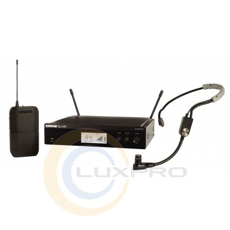 BLX14E/SM35 - радіосистема включає приймач SHURE BLX4, поясний передавач SHURE BLX1, головний конденсаторний мікрофон SHURE SM35, блок живлення, мікрофонний кліп, вітрові скла та посібник користувача. Кронштейни для кріплення в річку в комплекті. Бездротовий кардіоїдний конденсаторний мікрофон SHURE SM35 типу гарнітури призначений для мовлення та вокалу, пропонуючи користувачам зносостійкість, комфорт та надійність.