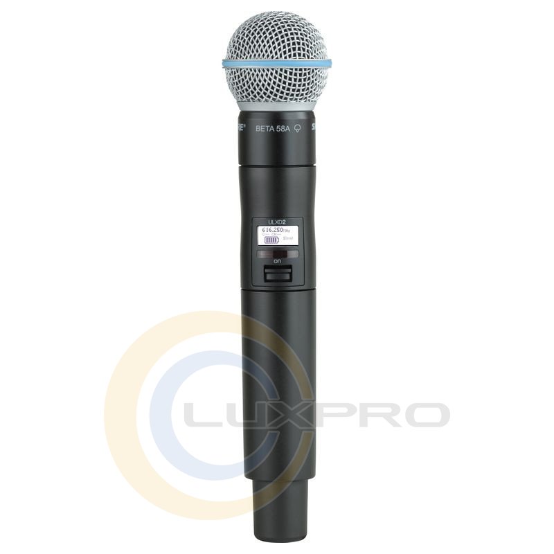 ULXD2/B58 51 - ручний мікрофон, 256-бітове шифрування AES, працює від літій-іонної батареї, що перезаряджається, до 11 годин, можливе використання двох батарей АА. Контакти док-станції SBC200 Dual (не в комплекті), пряма зарядка акумулятора, алюмінієвий корпус. Модифікація K51 працює у діапазоні 606-670 МГц.