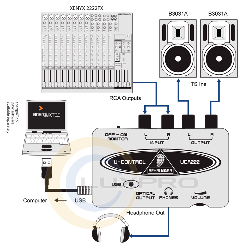 Аудіо / MIDI-секвенсор володіє великим набором різних віртуальних інструментів і плагінів. Інтерфейс BEHRINGER U-CONTROL UCA222 надзвичайно комфортно у використанні, аудіоінтерфейс не потребує встановлення спеціальних драйверів на Windows і Mac OS. Харчування через USB дозволяє не замислюватися про наявність вільної розетки, а якісні матеріали та хороша збірка гарантують міцність і надійність приладу.