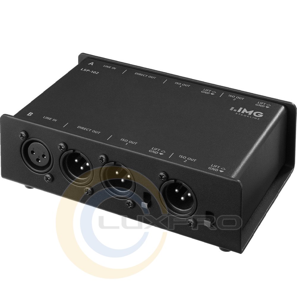 LSP-102 спліттер лінійного сигналу двоканальний. Для підключення кожного з двох вхідних аудіосигналів (каналів) до 3-м споживачам. У кожному каналі - один балансний вхід (XLR мама), один прямий балансний вихід (XLR тато), два гальванічно ізольованих балансних виходу (XLR тато), перемикач Ground Lift на кожному ізольованому виході. Міцний і жорсткий металевий корпус чорного кольору, придатний для частої транспортування і жорстких, в т.ч. сценічних, умов експлуатації.