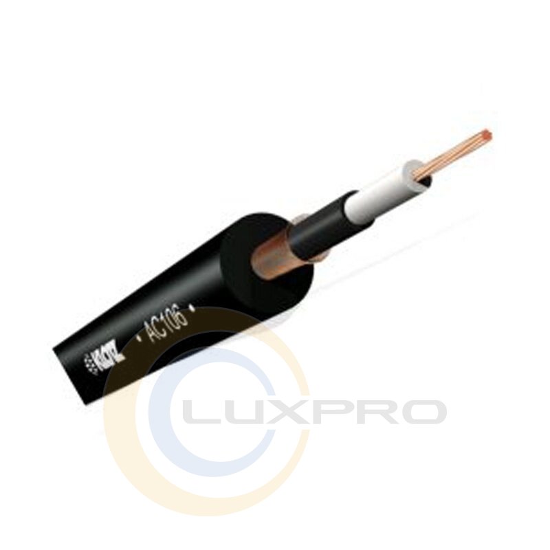 KLOTZ AC106SW.100 - високоякісний інструментальний кабель з подвійним екрануванням, поставляється в бухті. Має перерізпровідника 0.22 мм ². Використовується для розпаювання інструментальних або міжблочних несиметричних кабелів. Зовнішній діаметр кабелю 6.5 мм, мідні провідники, колір чорний.