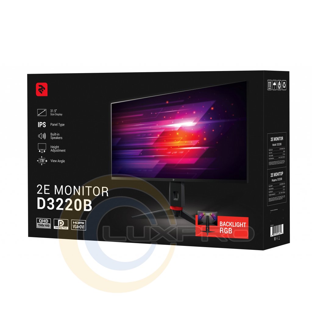 Діагональ монітора 31,5″. Модель оснащено матрицею типу IPS із широким кутом огляду 178°/178°, відгуком 4 мс та яскравістю 300 кд/м 2 . Стильний корпус виготовлено з якісногота міцного пластику. Монітор має розніми D-Sub, DVI, HDMI, DP. Співвідношення сторін16:9, роздільна здатність 2 560 × 1 440, частота 75 Гц. Кількість кольорів – 16,7 млн. Вага– 10,1 кг. Монітор має україномовне меню.