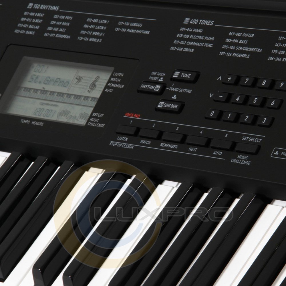 CTK-3200 - відмінний старт для справжніх музичних фанатів! 61 клавіша фортепіанного типу та клавіатура, чутлива до торкання надає справжнє задоволення від гри. Крім клавіатури, широкий спектр можливостей інструменту здивує навіть досвідчених музикантів: в арсеналі інструменту 150 стилів (в тому числі російських і кавказьких), функція семплювання, pitch bend, аудіо вхід для відтворення мр3 файлів, і багато інших функцій. До того ж нова покрокова система навчання допоможе у вдосконаленні ігрових навичок. За допомогою ж функції семплірованія можна записувати голоси і звукові спецефекти безпосередньо через аудіовхід, надалі використовуючи їх при грі за допомогою кнопок Voice pad.Функція Voice Pad розширює можливості функції семплювання: п'ять кнопок на панелі управління можуть використовуватися для програвання встановлених семплів (голосові семпли, звукові ефекти і інструментальні тембри). Аудіо вхід і вхід мікрофона можуть використовуватися для запису власних семплів (тривалістю до 10 секунд), які також можуть програватися з використанням кнопок Voice Pad. Звуковий процесор AHL. 3-ступінчаста система навчання. Можливість підключення МР3-плеєра і запис власних семплів. Синтезатор можна використовувати в якості повноцінної МИДИ-клавіатури, завдяки колесу PITCH BEND.особливості: