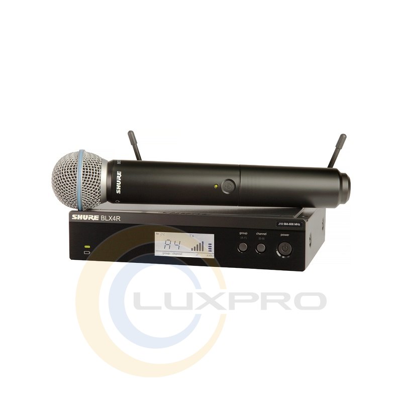 SHURE BLX24RE/B58-M17 - радіосистема з сімейства систем BLX. Дуже добре підходить для початкового рівня. SHUREBLX24RE / B58 M17 можна використовувати як в маленьких приміщеннях, так і в великих. Радіосистема SHURE BLX24RE / B58 M17 володіє великою кількістю сучасних функцій і простим інтуїтивним управлінням. Передача звуку відбувається за допомогою бездротового передавача BLX2 з капсулем BETA 58. Робочі частоти від 662 до 686 MHz.Перехід від провідних мікрофонів до радіосистемам повинен бути вільним і простим. Серія бездротових систем SHURE BLX поєднує в собі професійну якість звуку з простотою установки і інтуїтивно зрозумілим інтерфейсом - Ви можете бути впевнені, що зможете працювати з системою відразу ж після того, як дістанете її з заводської упаковки. Система BLX доступна в різних комплектаціях: з ручним передавачем, головними і Петличний мікрофонами, а також в інструментальній конфтгураціі. Це найбільш доступна серія радіосистем SHURE для використання на сцені.Характеристики: