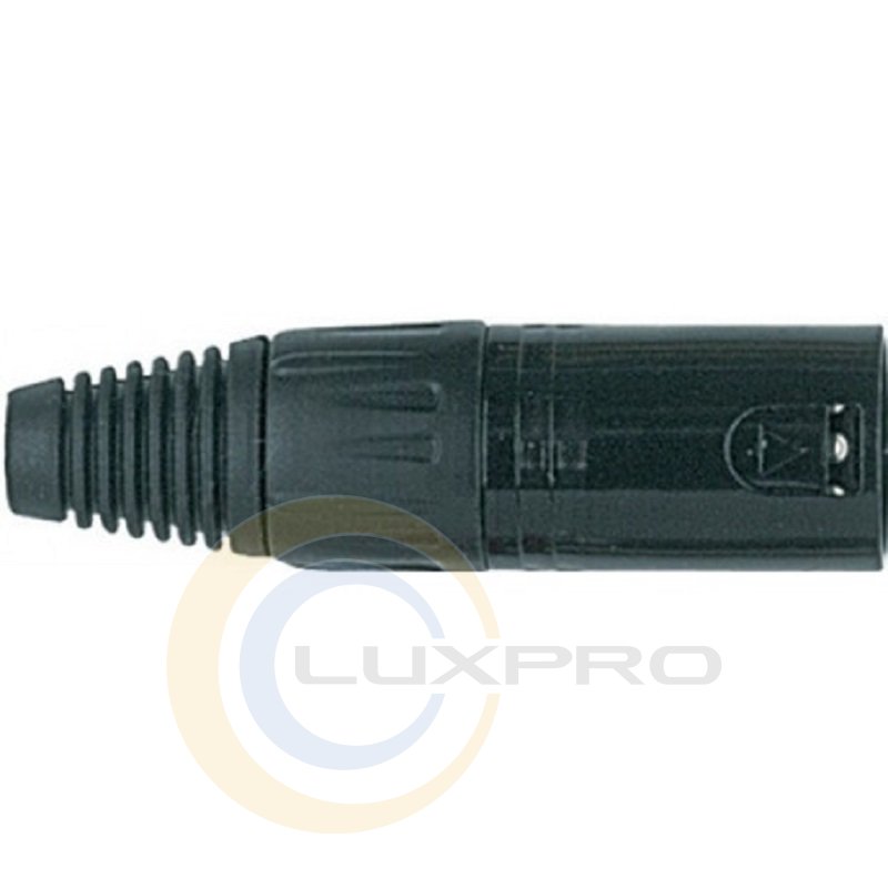 Роз'єм "XLR - тато", 3-х піновий, гумовий утримувач під кабель з нейлоновою вставкою, нікельовані контакти. Корпус: метал, колір: нікель, чорне кільце маркер.