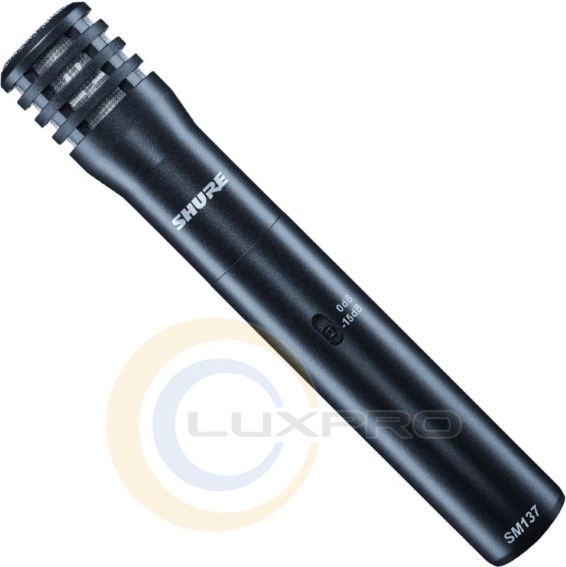 SM137 оснащений ультратонкою діафрагмою, яка забезпечує гладку високочастотну частотну характеристику із щільним, контрольованим низом. Аттенюатор -15 dB мінімізує спотворення, спричинені перехідними (піковими) аудіосигналами. Кардіоїдна спрямованість мікрофона ефективно усуває шум та зворотний зв'язок на позаосьових ділянках капсули. Незалежно від того, чи встановлений мікрофон на підзвучці гітарних кабінетів, барабанів, перкусії або вокалу, SM137 – це скромне рішення для студії чи дороги.