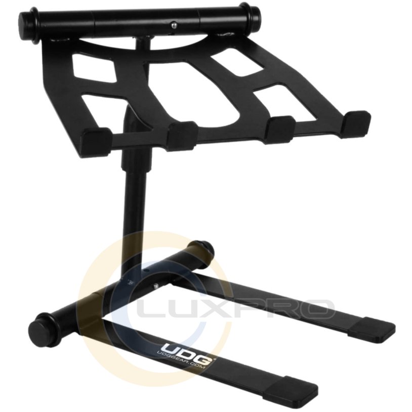 Стійка для ноутбука Ultimate Height Adjustable Laptop Stand Black оснащена регульованою по висоті телескопічною полицею для ноутбука, яка повертається на 360°, що добре підходить для мобільних ді-джеїв та електронних музикантів. Підставка може вмістити ноутбуки до 19 дюймів, а також iPad, планшети або різне обладнання, наприклад, контролери, мікшери або виробниче обладнання.