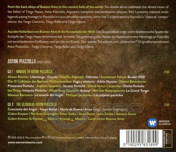 З нагоди 25-ї річниці від дня смерті знаменитого аргентинського музиканта та композитора Астор Пьяццолли, видається новий збірник творів родоначальника танго нуево. Треки, що увійшли до альбому, а різний час були записані такими знаменитими музикантами як Марта Аргеріх, 12 віолончелістів Берлінської філармонії, Даніель Баренбойм, Девід Аарон Карпентер, Мстислав Ростропович, Філіп Жарускі та багатьма іншими.
