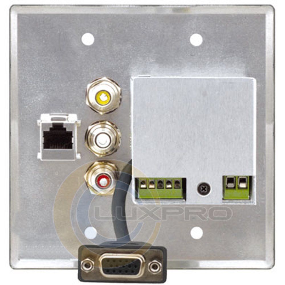 Стінна панель для комп'ютерного графічного та композитного відеосигналів зі стереозвуком та прохідною розеткою RJ-45, для ЄСWP-209/EU(G) - стінна панель з роз'ємами для підключення комп'ютерного графічного та композитного відеосигналів (кожен зі своїм каналом стереозвуку) та з роз'ємом локальної мережі RJ-45. Для комп'ютерного графічного входу є прохідний вихід, якого підключається місцевий контрольний монітор. Виконання для Європи.Особливості: