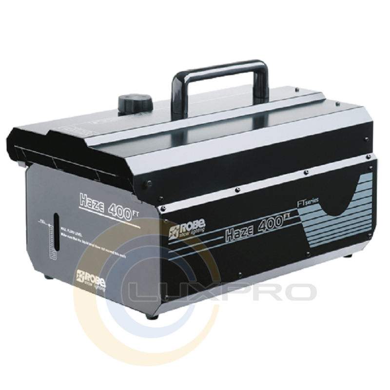 Haze 400 FT - це професійний генератор туману від Robe. Машина здатна дуже швидко і тихо виробляти велику кількість туману. Спеціально розроблений компресор не створює вібрацій і практично безшумний під час роботи. Крім того, вбудоване управління по DMX полегшує управління генератором туману. Haze 400 FT виробляє великий обсяг оптично проникного туману, використовуючи рідину на водній основі.Характеристики: