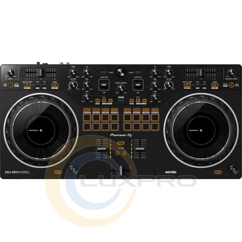 DJ-контролер DDJ-REV1. Отримайте практичний досвід роботи з інтерфейсом, розробленим для імітації 2 вертушок PLX та мікшера серії DJM-S, що використовується професійними батл-діджеями. Продумане розташування елементів управління моделі DDJ-REV1 гарантує комфортне мікшування і скретчинг. Слайдери темпу розміром 60 мм стали довшими, ніж аналогічні елементи DDJ-SB3, що дозволяє точніше контролювати весь процес. Вони розміщені горизонтально над деками, а сенсорні педи були переміщені до секції мікшера, щоб інтуїтивно поєднувати ефекти, запускати семпли або скретчити доріжки.