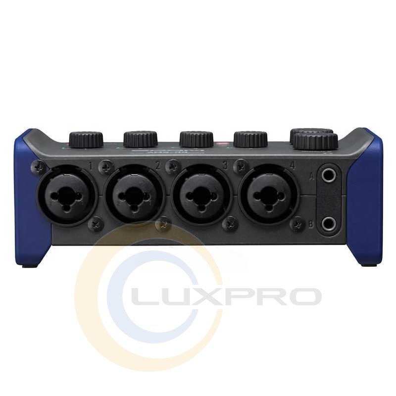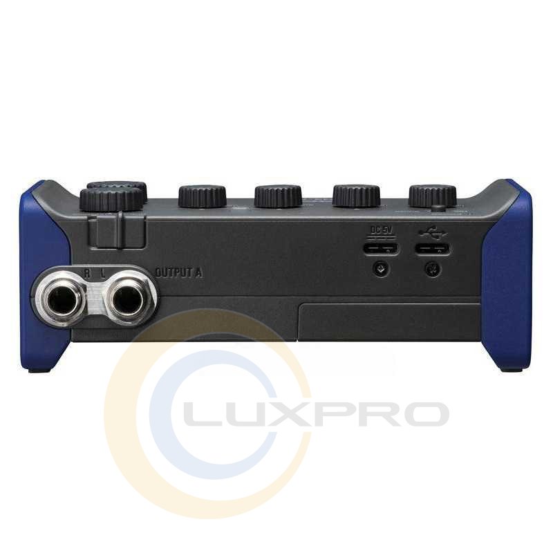 Поєднані XLR/TS комбо-гнізда можна використовувати разом із мікрофоном або будь-яким джерелом лінійного сигналу. Входи підтримують фантомне живлення до 48V. 1 канал має Hi-Z вхід для електро-або бас-гітари.