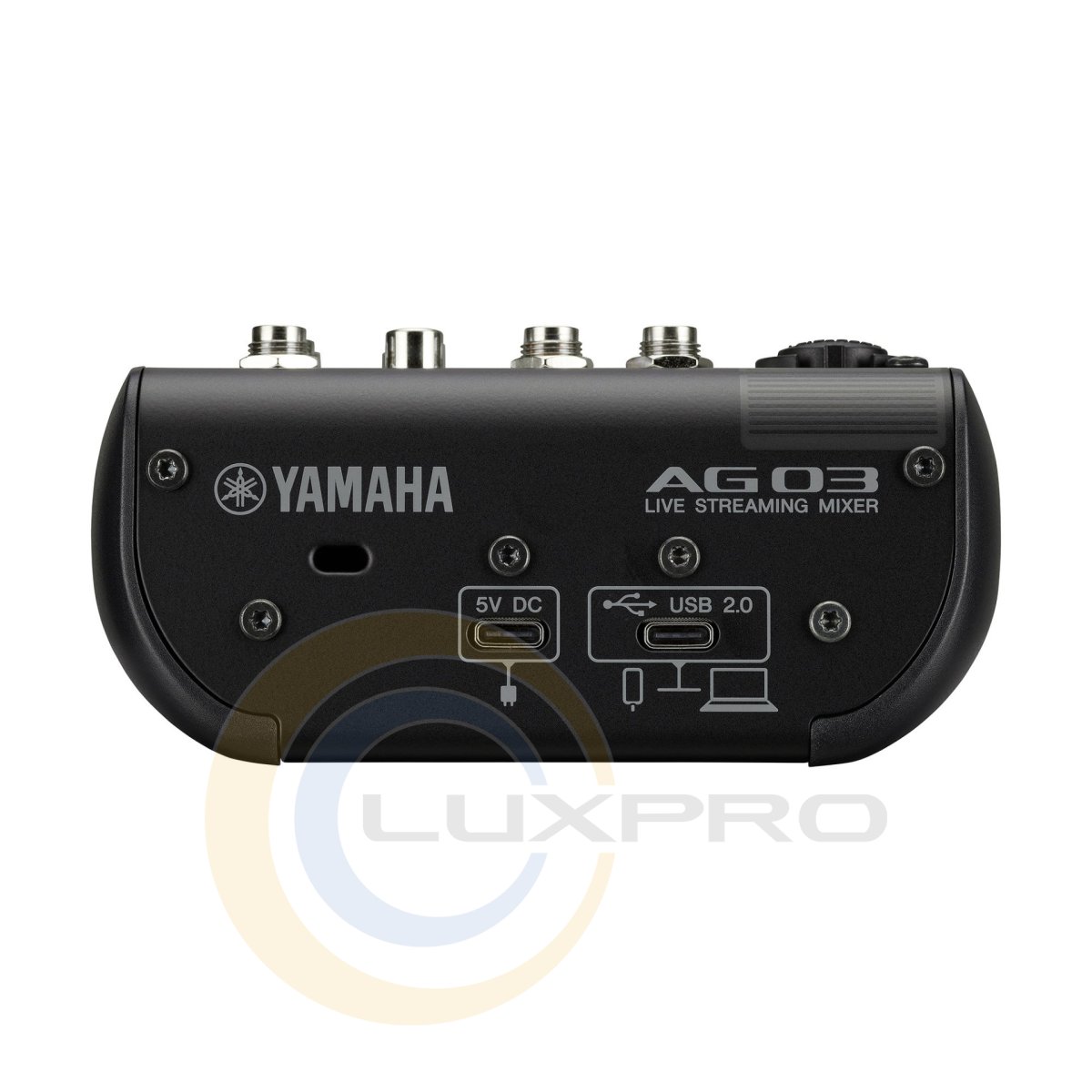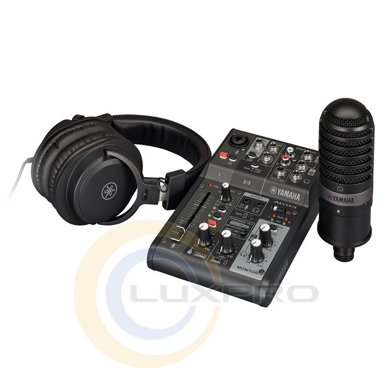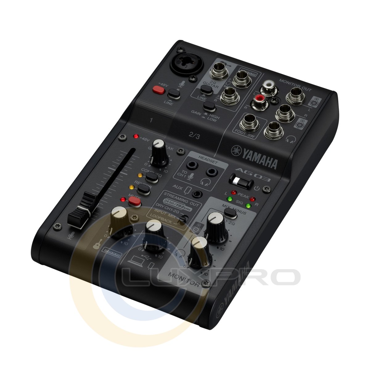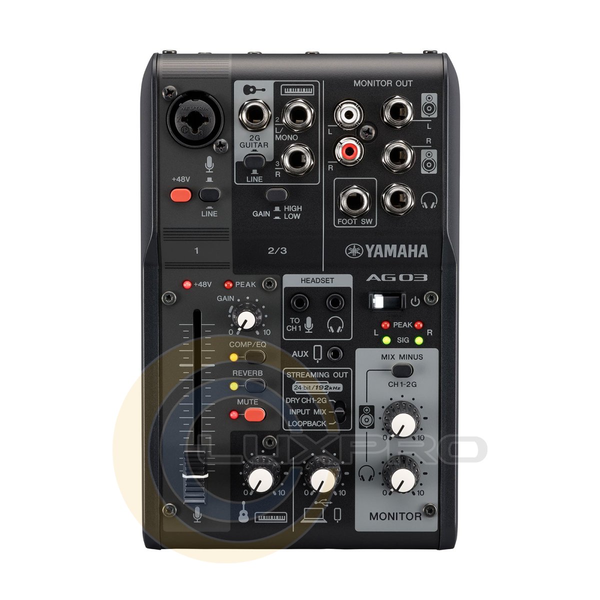 - комплектація: аудіоінтерфейс AG03MK2, конденсаторний мікрофон YCM01, студійні навушники YH-MT1, XLR кабель (3м), кабель USB2.0 (1,5м), посібник користувача, інформація про завантаження Wavelab Cast, інформація про завантаження Cubase AI.