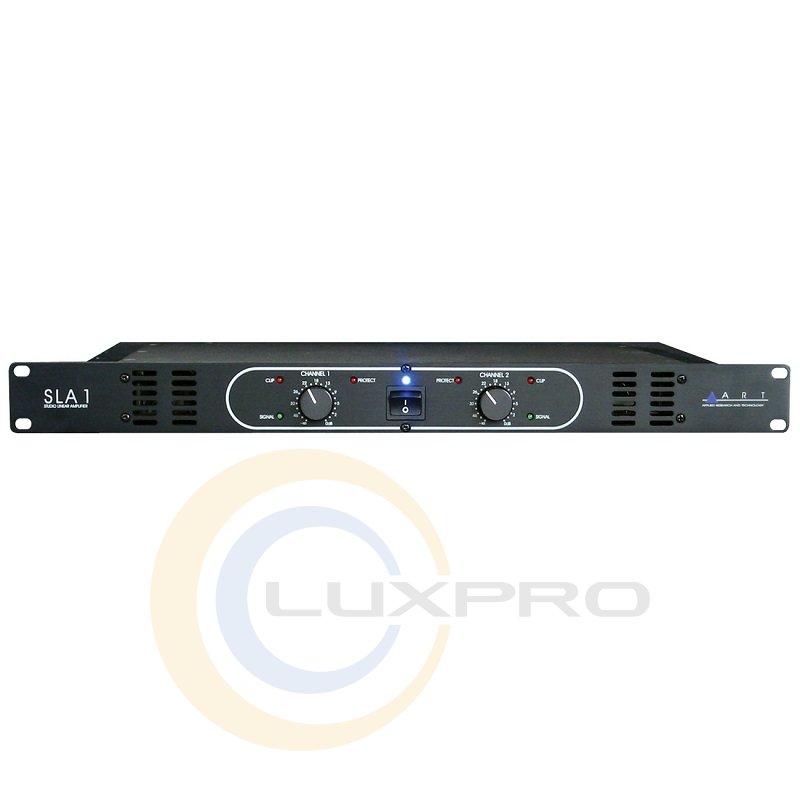 Двоканальний транзисторний підсилювач потужності SLA-1 призначений для роботи з моніторами SLM 1. Один з кращих підсилювачів в своєму класі. Однаково добре підходить для студійних інсталяцій і для експлуатації з HiFi акустикою.Підсилювач має потужність 100 Вт на канал при опорі навантаження 8 Ом, 130 Вт на канал при опорі навантаження 4 Ом, 260 Вт в мостовому режимі при опорі навантаження 8 Ом, 175 Вт в мостовому режимі при опорі навантаження 16 Ом.Підсилювач має тороидальний трансформатор, систему охолодження SmartFan з регульованою швидкістю обертання вентилятора, захист від короткого замикання, перевантаження, відсутність навантаження, перегріву (відключає посилення при досягненні температури 90 градусів), радіочастот.На задній панелі знаходяться симетричні входи (XLR і джеки), виходи для акустичних систем на закручується роз'ємах, знімний мережевий кабель, автоматичний запобіжник, перемикач стерео / моно (мостовий режим задається відповідним підключенням акустичних систем), кнопка відключення землі від корпусу.На передній панелі є обертаються регулятори рівня, поканальні світлодіодні індикатори наявності сигналу, перевантаження і активності захисту. Також є вимикач живлення і індикатор його наявності. Підсилювач однорековом, маса 6 кг.Характеристики: