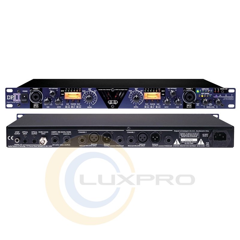 Двухканальный ламповый микрофонно-инструментальный предусилитель c выходным лимитером, пресетным переключателем тембров и цифровыми выходами S/PDIF (24bit@96кГц) и ADAT OpticalЦифровые выходы вкючают S/PDIF, TOSLINK или ADAT (выбор на передней панели).DPS II также представляет цифровой конвертор ART A-to-D, позволяющий достигать максимально мягкого звука несмотря на цифровой характер обработок.Характеристики: