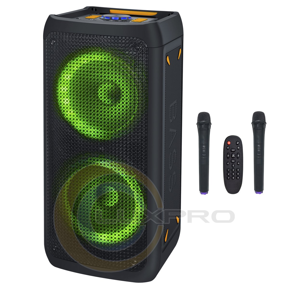 | Інтерфейси: | Bluetooth, FM тюнер, microUSB, USB, Два радіомікрофона, Мікрофон, Пульт ДУ |