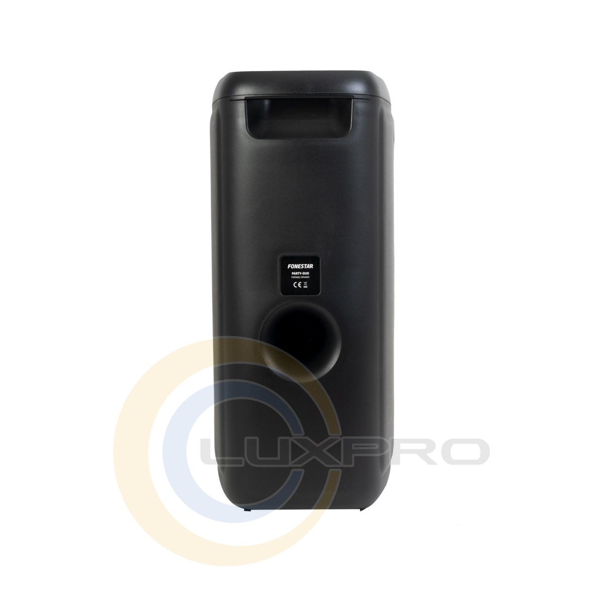 Портативна акустична система PARTY-DUO. Налаштуйте власне караоке вдома завдяки двом мікрофонним входам з незалежним регулюванням ехо та гучності! Aux-вхід розширює можливості відтворення, дозволяючи підключати будь-який інший аудіопристрій. Акустична система оснащена двома світлодіодними кільцями, що відтворюють світлові ефекти в ритмі музики. Завдяки місткому акумулятору, PARTY-DUO є дуже універсальним та адаптованим гучномовцем для різноманітних завдань. В комплекті з пристроєм постачається пульт дистанційного керування.