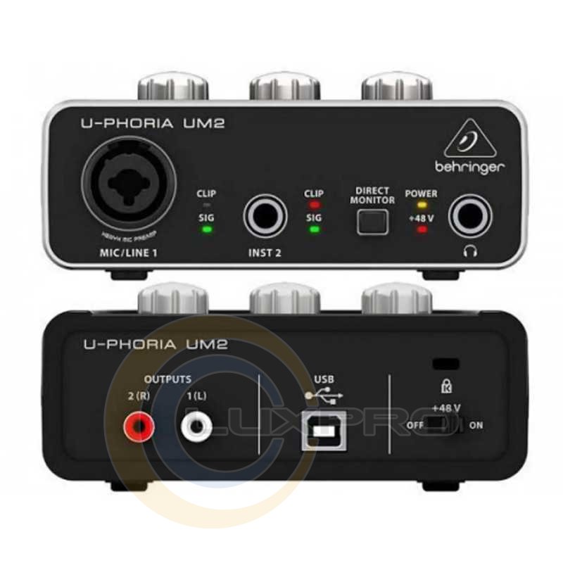 U-PHORIA UM2 сумісний з усіма типовими для звукозаписної студії чи концертного залу пристроями – мікрофонами, музичними інструментами, мікшерами та іншими приладами для корекції аудіо. У ролі вхідних роз'ємів виступають інструментальний дюймовий джек і комбіноване мікрофонно-інструментальне XLR/TRS-гніздо. Останнє оснащене вбудованим XENYX-підсилювачем для чіткого та чіткого зчитування сигналу з мікрофона.