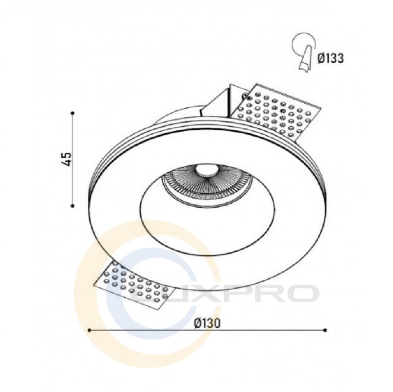 Точковий вбудований світильник KD-GIPS RD130 H45 добре виглядатиме в сучасних інтер'єрах. Освітлювальний прилад виготовлений із гіпсу, має цоколь GU10. Ступінь захисту від вологи та пилу – IP20.