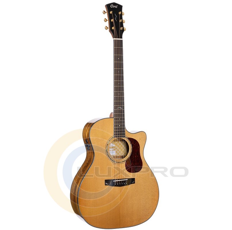 Електроакустична гітара GOLD-A6 Bocote NAT w/case. Відмінною рисою гітар Cort серії Gold є фірмова обробка Aged to Vintage (ATV), яка надає звучанню нового інструменту повнозвучного та відкритого тембрального характеру, типового для розіграної вінтажної гітари. ATV діє за принципом торрефікації, надаючи Gold-A6 об'ємний відкритий тон, яскравий, але природний із потужними та теплими середніми частотами, які підкреслюються корпусом із масиву червоного дерева. Особливе покриття, оброблене ультрафіолетом, надійно захищає інструмент та зберігає тембральне багатство. Завершує картину фірмова електроніка Fishman Flex Blend System, що пропонує музикантам великі можливості контролю звучання та оснащена вбудованим тюнером.