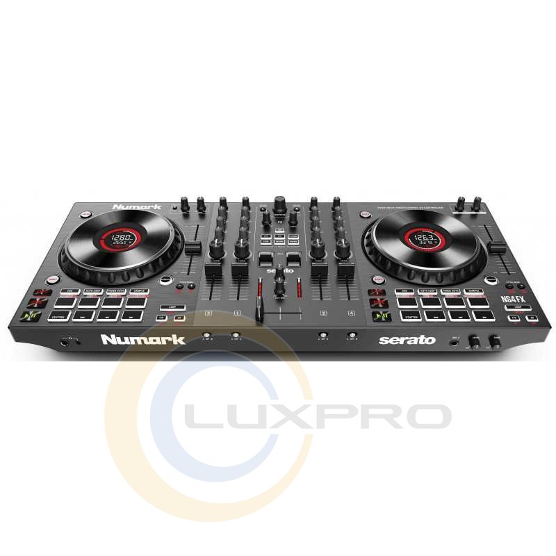 DJ-контролер NS4FX. Завдяки повному управлінню звуком по чотирьох незалежних каналах, ді-джеї можуть одночасно мікшувати треки, семпли, лупи та багато іншого з чотирьох програмних DJ дек. Кожен із 4 каналів NS4FX оснащений виділеними фейдерами гучності преміум-класу, 3-смуговим еквалайзером з повним відключенням та великими регуляторами фільтра високих/низьких частот.